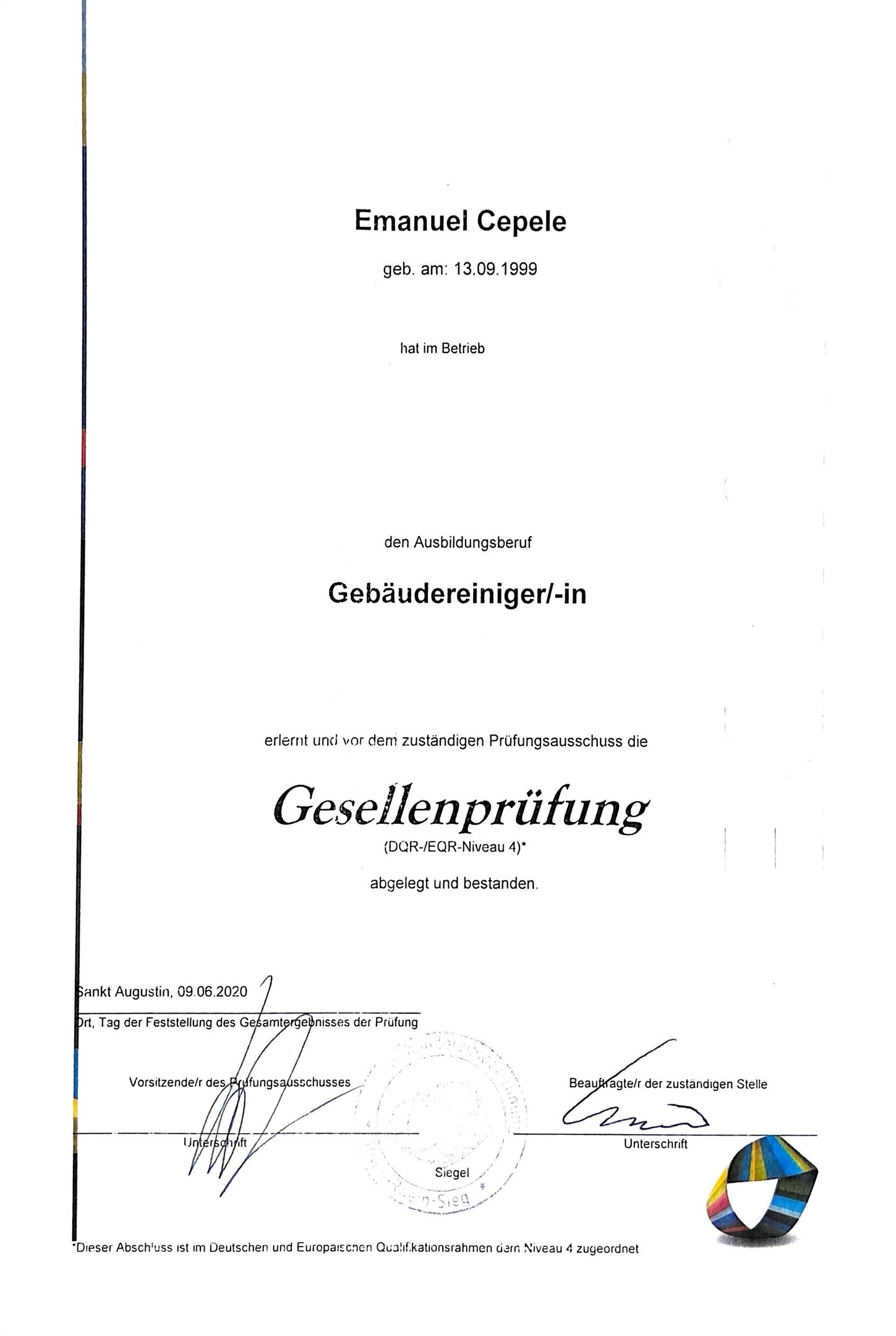 Mein Name ist Emanuel Cepele. Seit über 10 Jahren arbeite ich in der Gebäudereinigung und habe nach meiner Ausbildung zum Gebäudereiniger viele praktische Erfahrungen gesammelt. Im Jahr 2023 habe ich CEPELE Cleaning Service gegründet – mit dem Ziel, zuverlässige und saubere Arbeit zu leisten, auf die sich unsere Kunden wirklich verlassen können.
